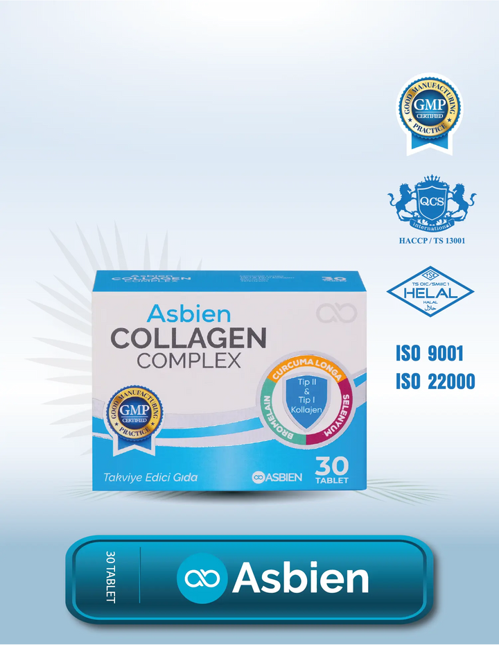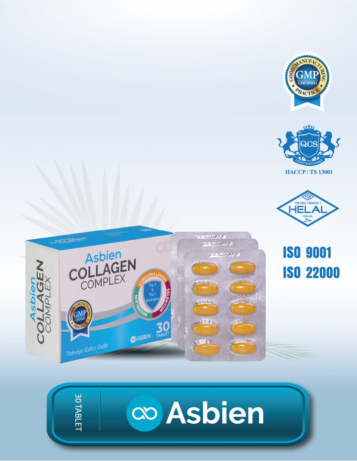 Bu dengeli formül, günlük beslenmenizi desteklemek ve sağlıklı bir yaşam tarzını sürdürmek için özenle seçilmiş bileşenlerden oluşur. Asbien Collagen Complex, cilt sağlığınızı korurken, eklem rahatlığı sağlar ve bağışıklık sisteminizi güçlendirir.